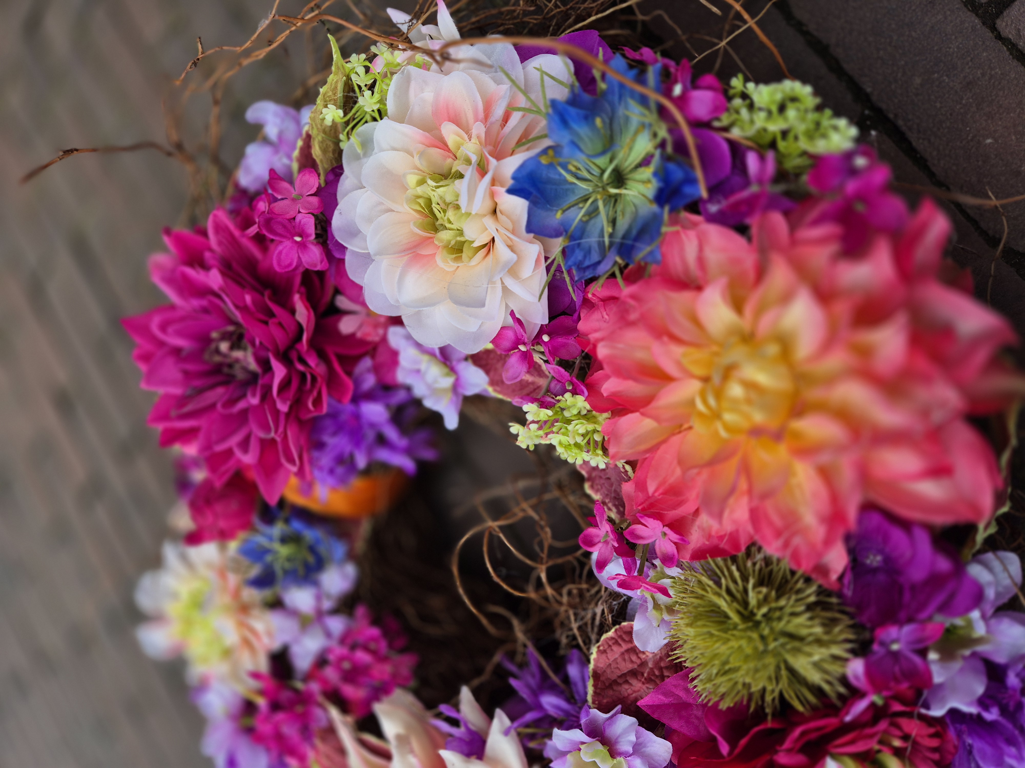 Deze krans is gemaakt van zijden en droog materialen, daardoor kun je hem gewoon ieder jaar opnieuw gebruiken 🙂