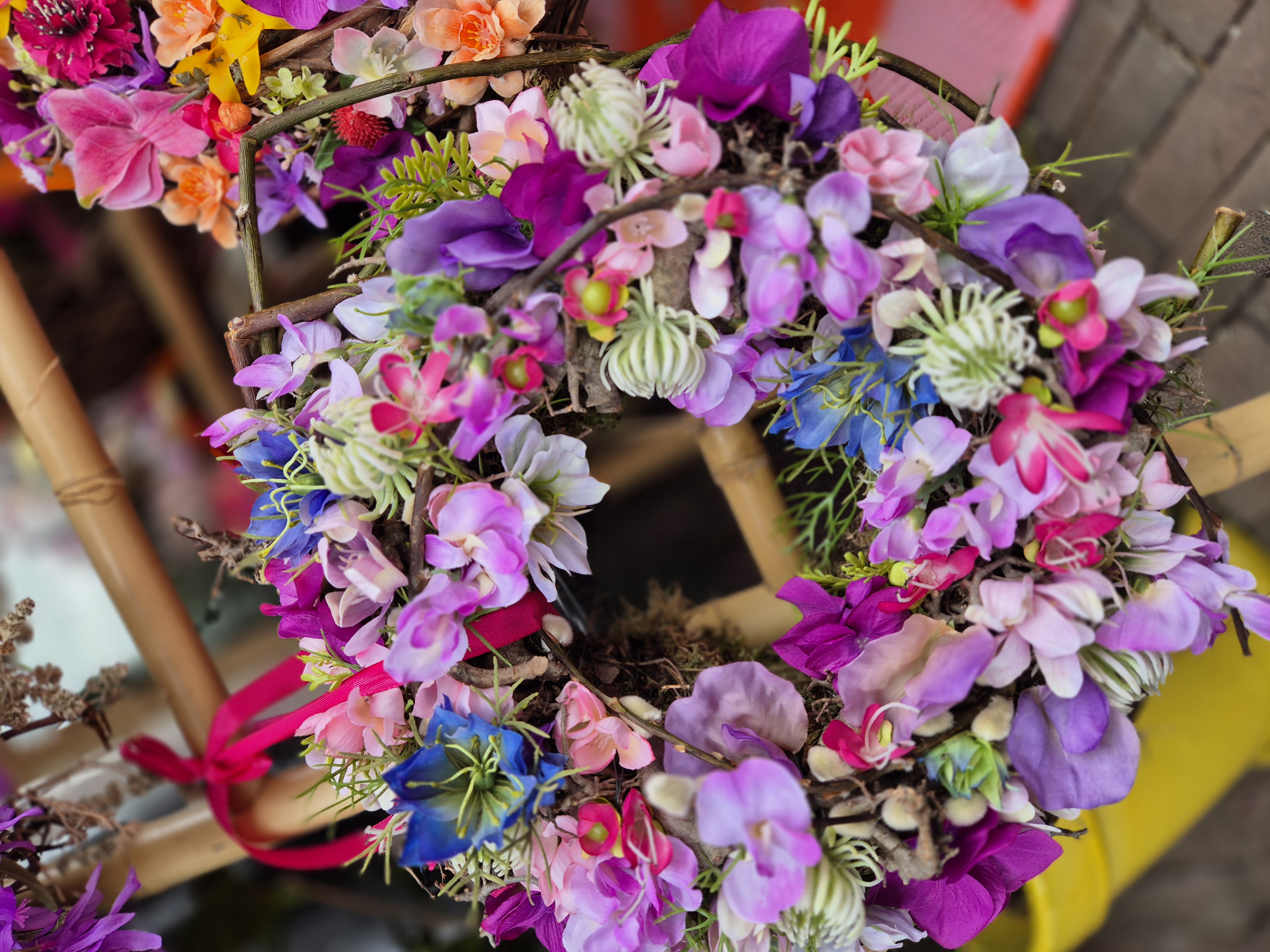 Deze krans is gemaakt van zijden en droog materialen, daardoor kun je hem gewoon ieder jaar opnieuw gebruiken 🙂