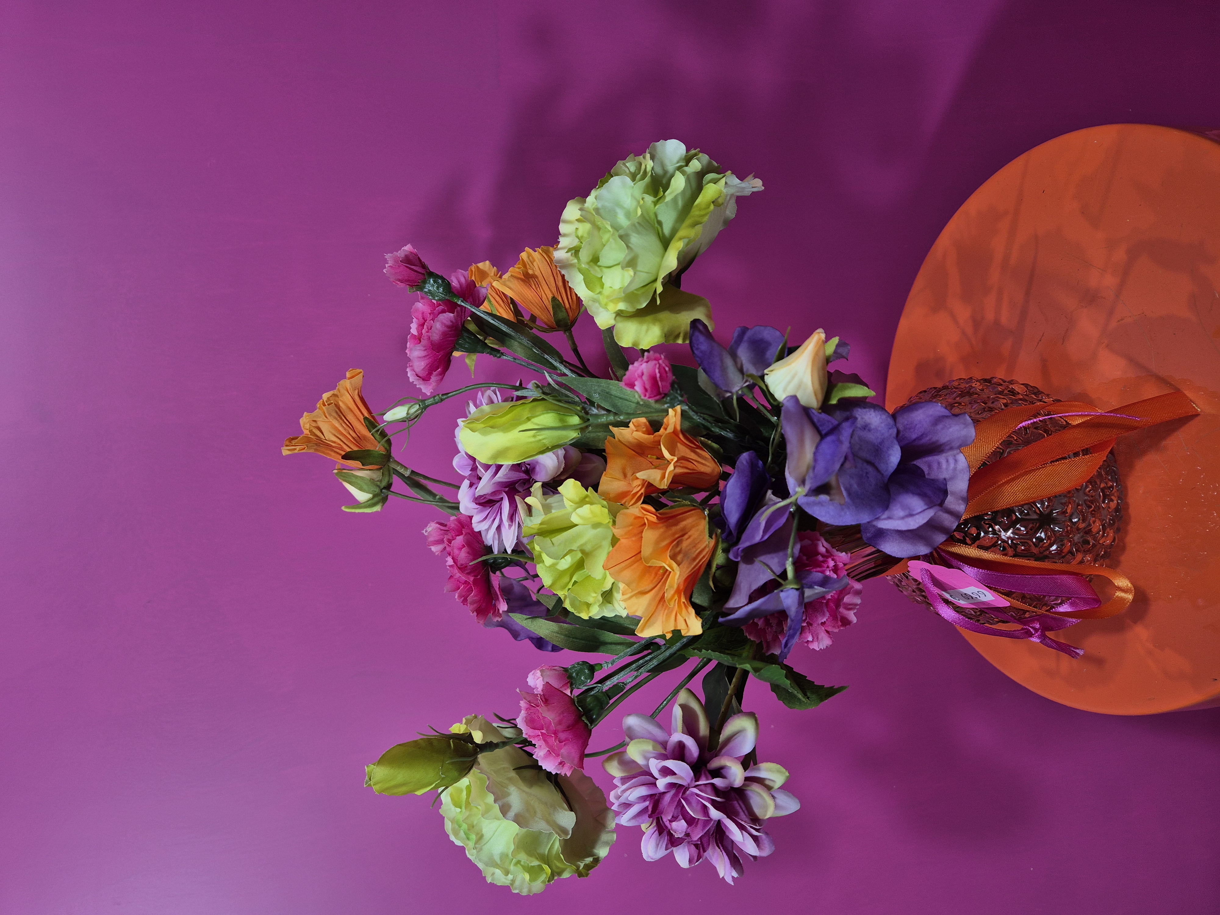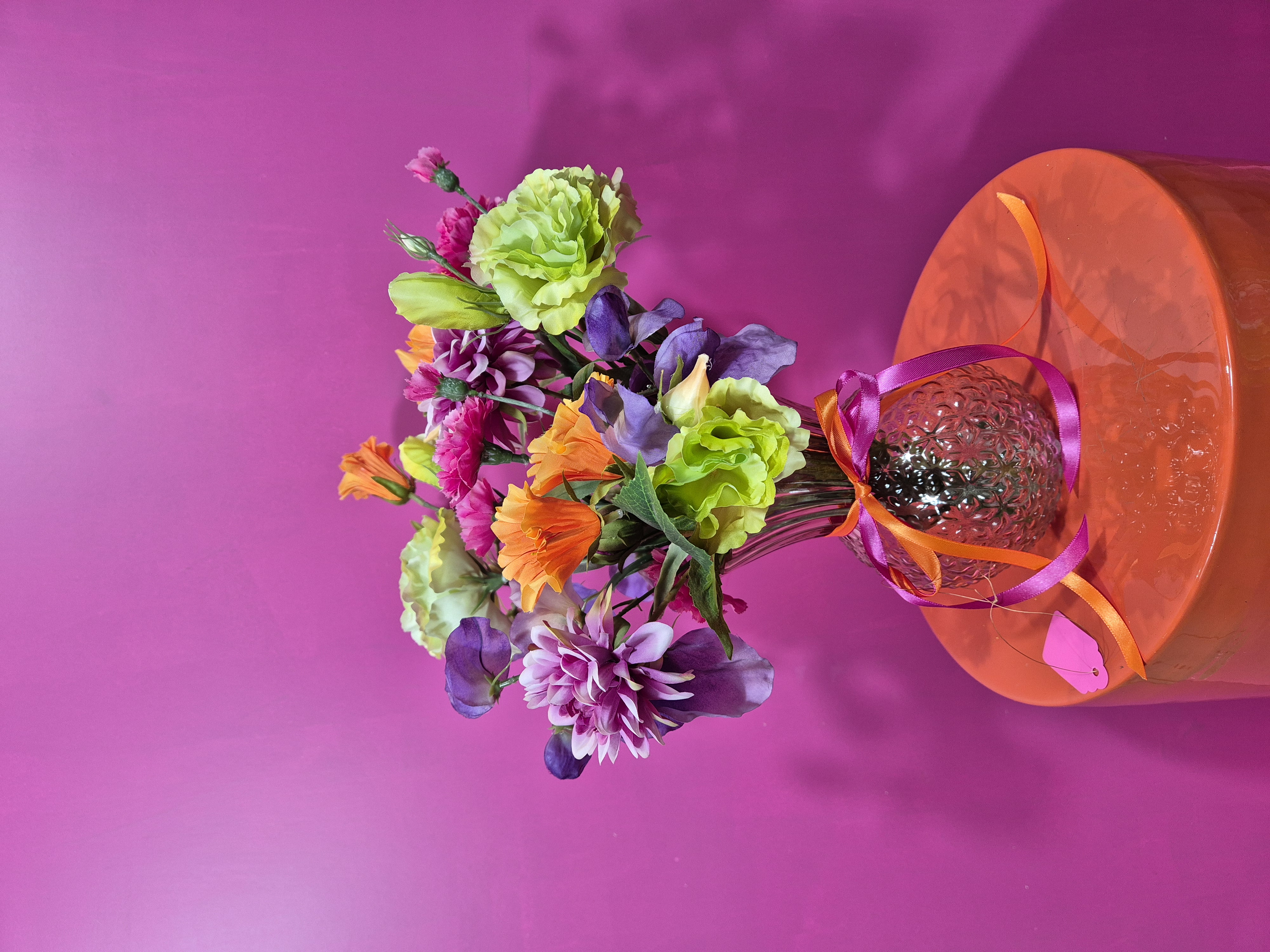 Glasvaasje gevuld met zijdenbloemen 🙂