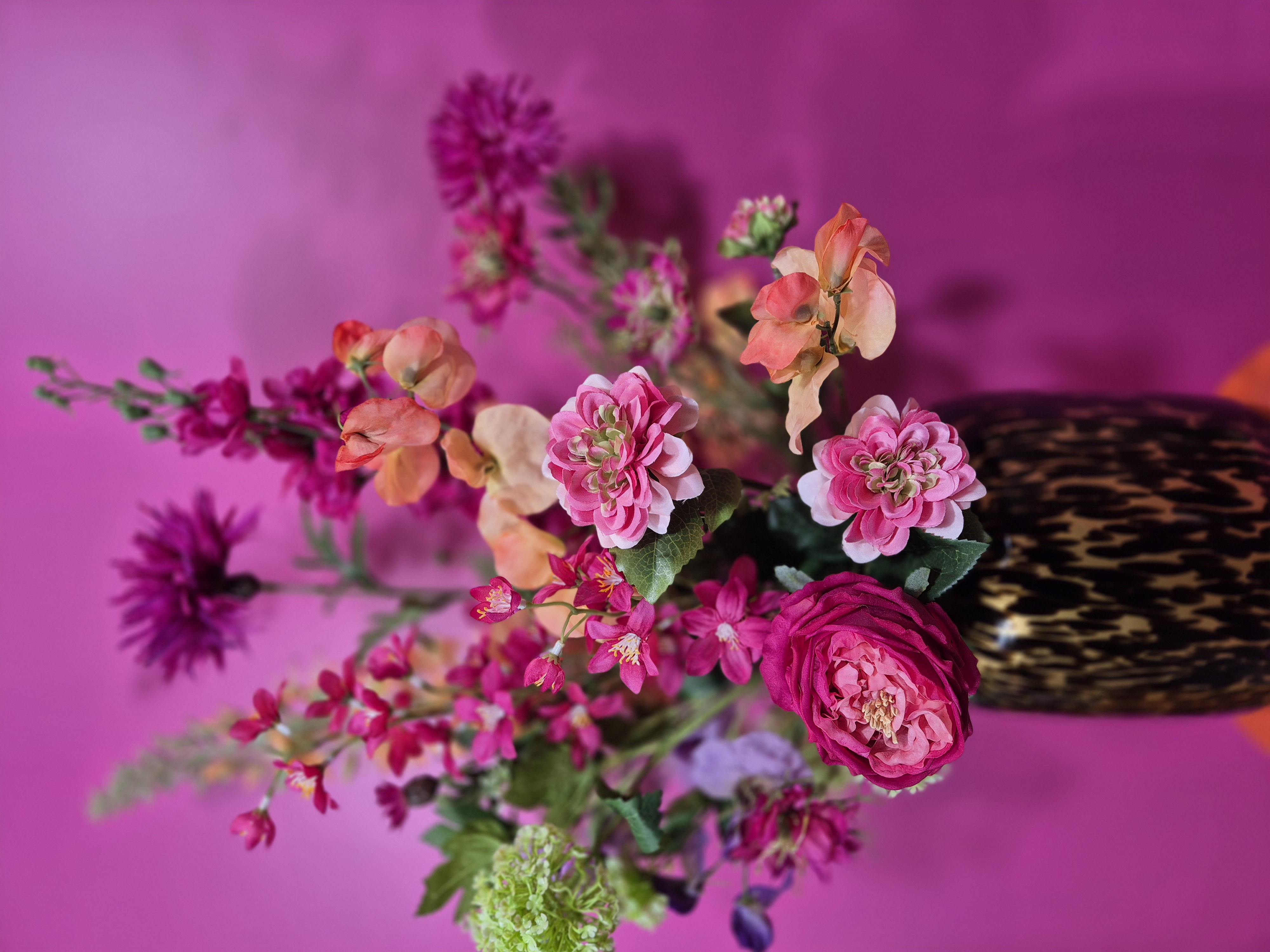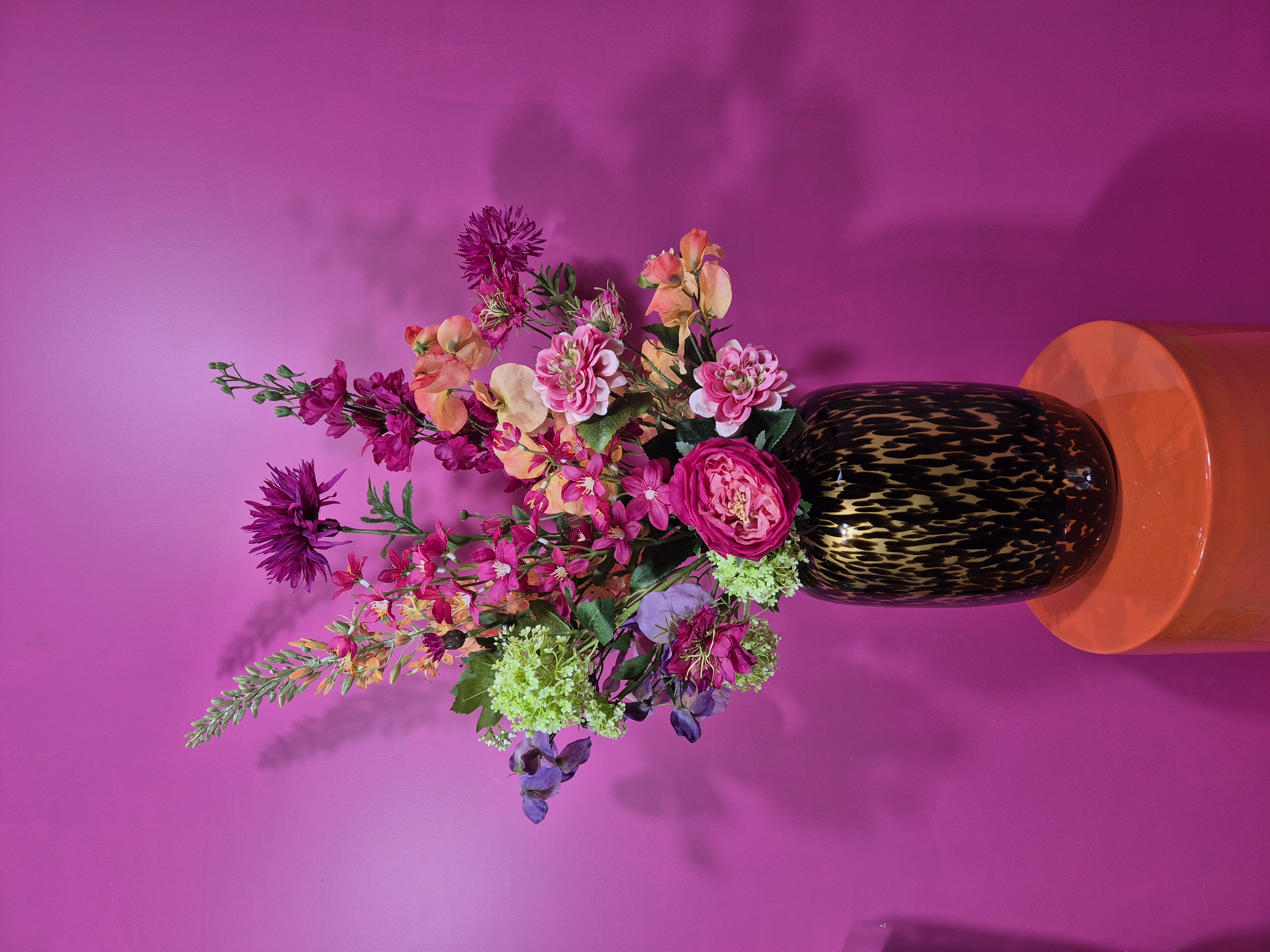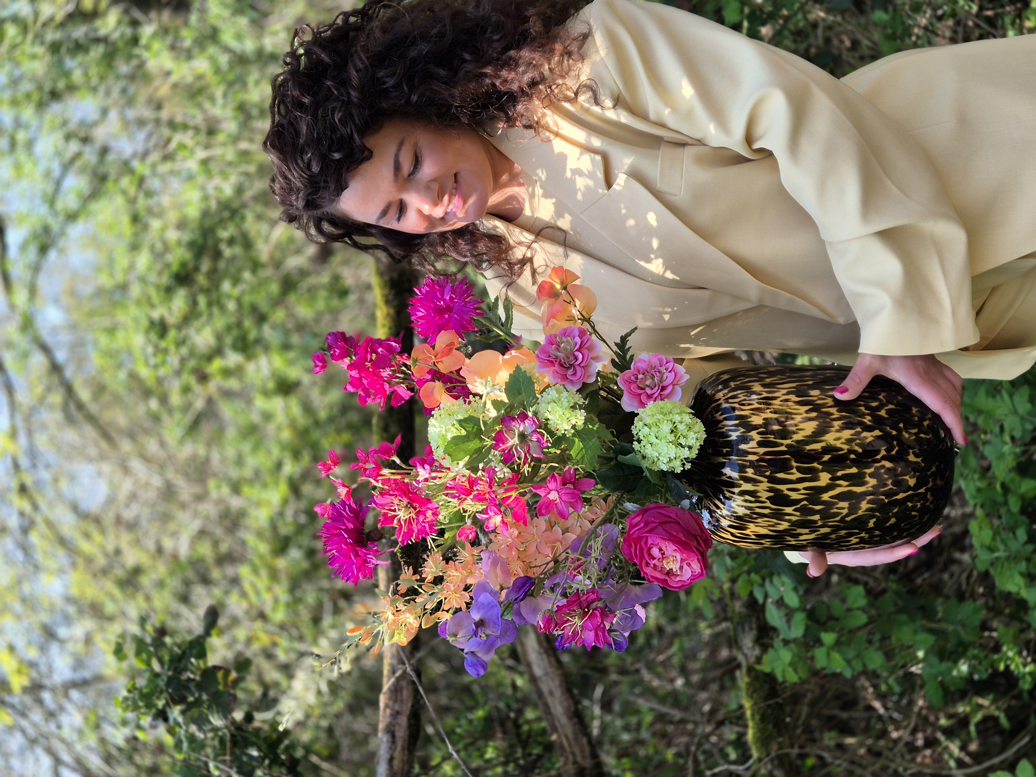 Dit zijdenboeket staat in vaas Daani cheetah maat S